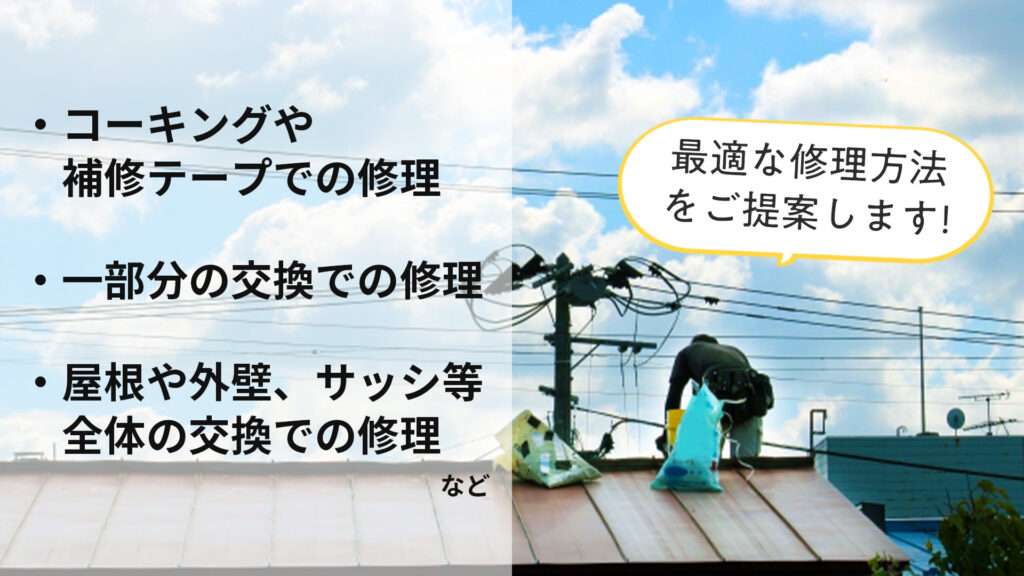 例えば屋根に問題がある場合、必ずしも葺き替えなどの大規模工事が必要とは限りません。最低限の修理でも十分であると判断すれば、最低限の修理をご提案し、お客様の費用負担を最小限に抑えるようしております。