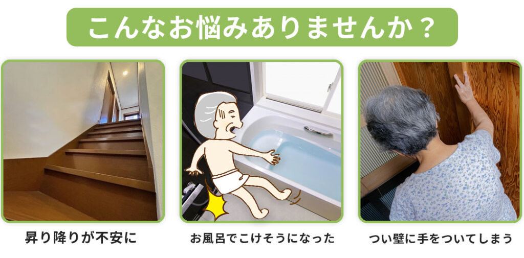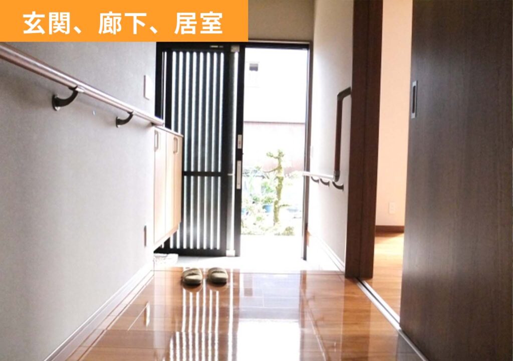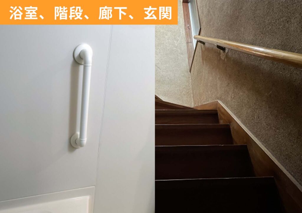 主に「玄関・廊下・トイレ・浴室・階段」など、日常生活の動線上で転倒リスクがある場所が対象です。設置希望場所によっては対象外になる場合もあるので、まずはご相談ください。